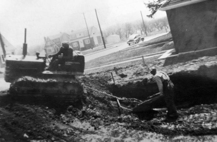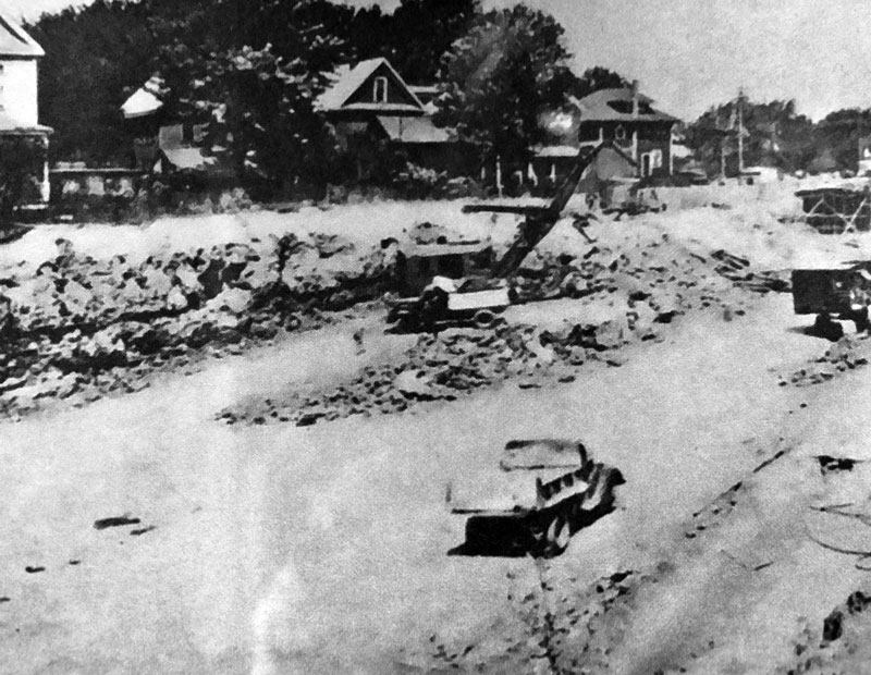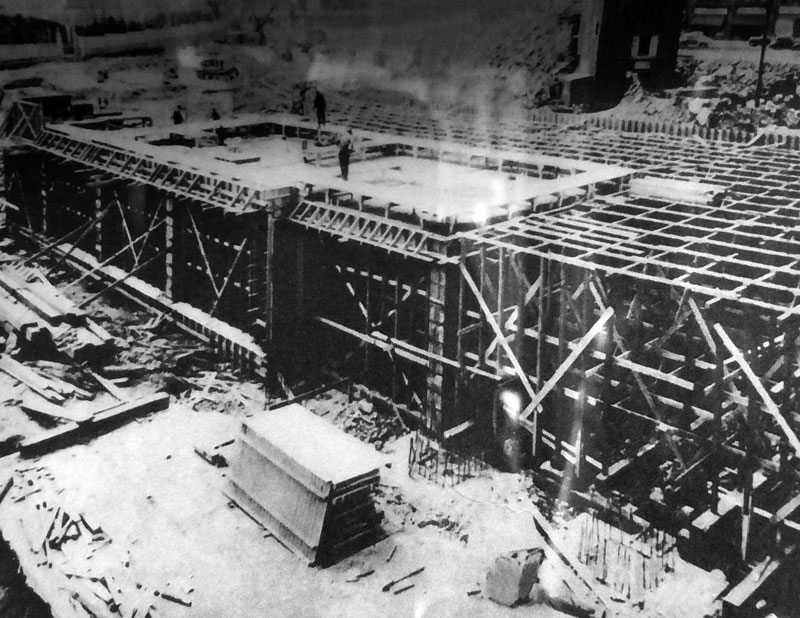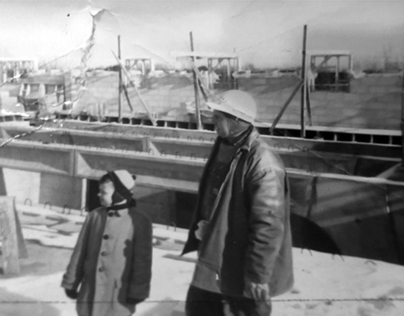 Canadian Martyrs Church construction site in Hamilton, 1961. Built by Hawkins Construction.