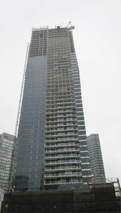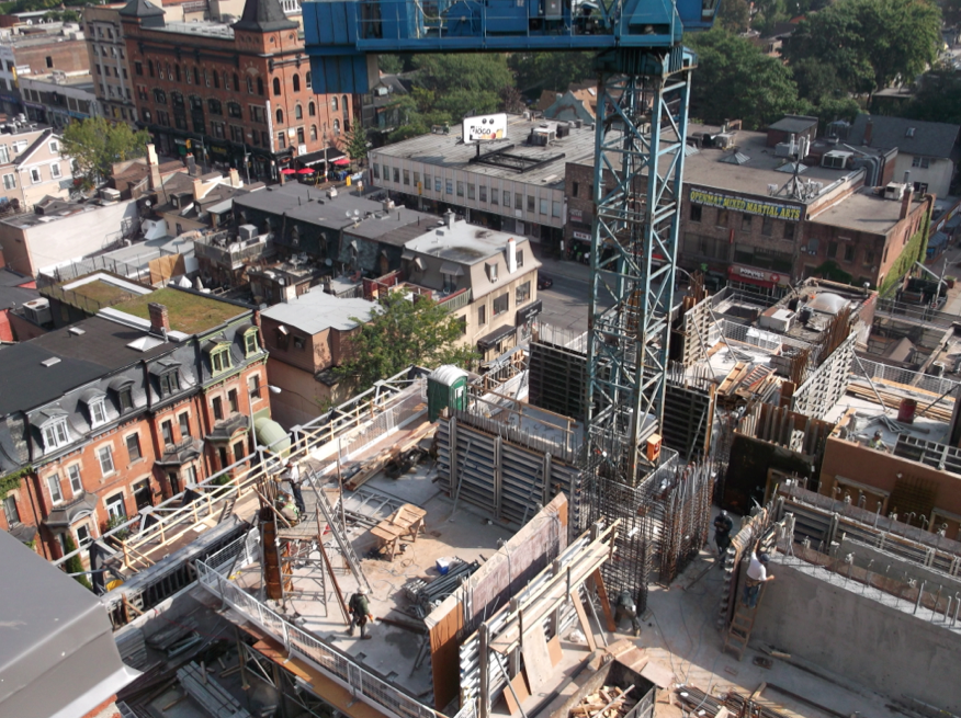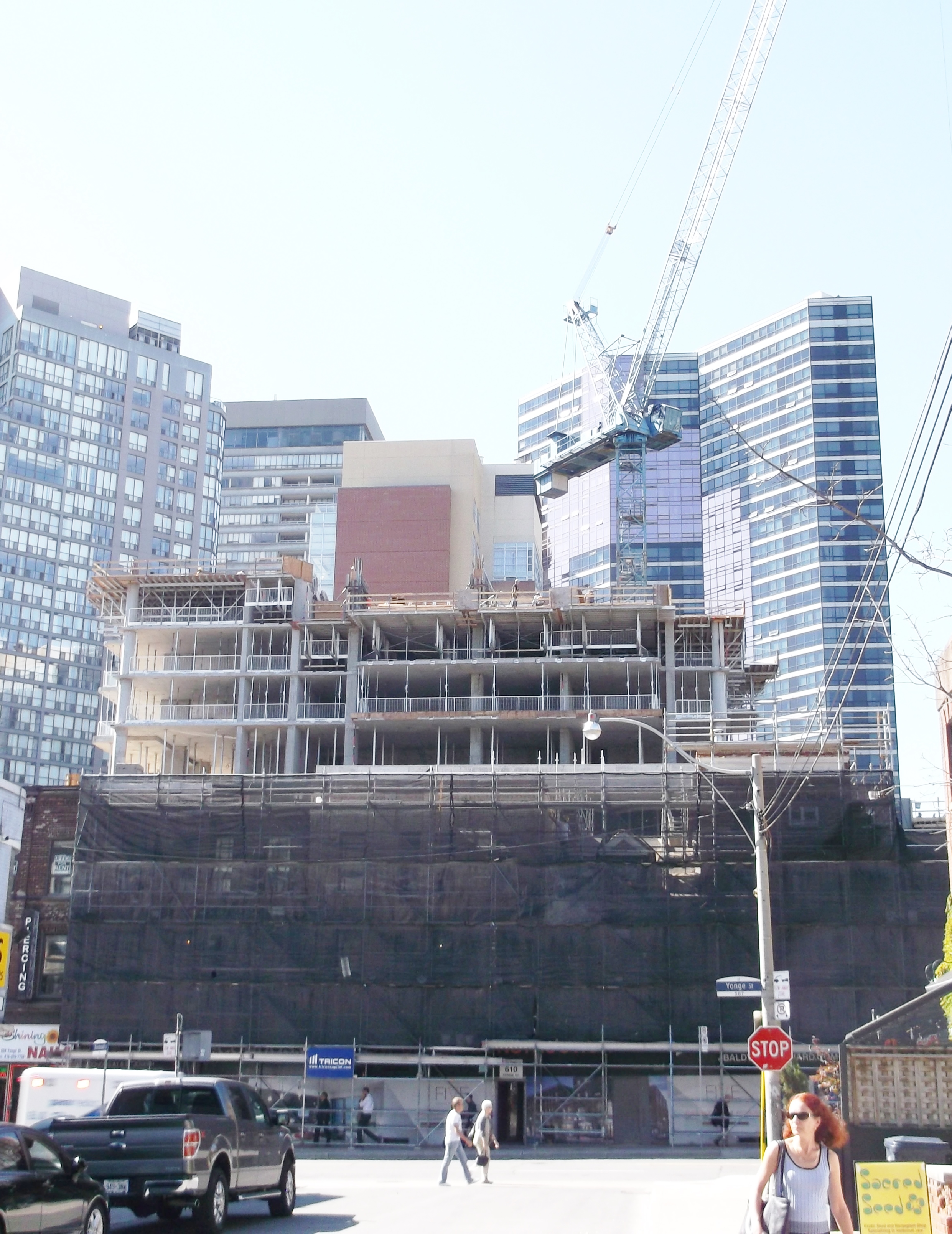 "FIVE Condos at 5 St. Joseph is a 48-storey residential condominium project located in the heart of downtown Toronto. The project consists of 539 residential units and 11,250 sq. ft. of ground floor retail space. The project incorporates modern architecture with existing heritage architecture. The historical preservation involves the retention of the four-storey 1905 Gothic revival façade of 5 St. Joseph which will be one of the largest façade retentions ever undertaken in Toronto. The building also includes a 10,000 sq. ft. amenity center and a 6,000 sq. ft outdoor roof garden. Five is the winder of the BILD Condo of the Year Award, 2011. Pure construction value of $120 Million."