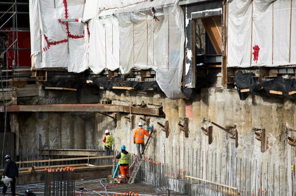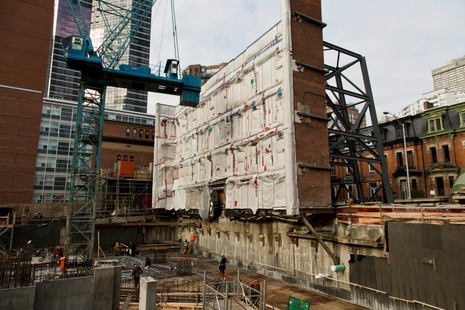 In a complicated feat of engineering and construction, the five-story 100 year old structure was hung in midair for 10 months.