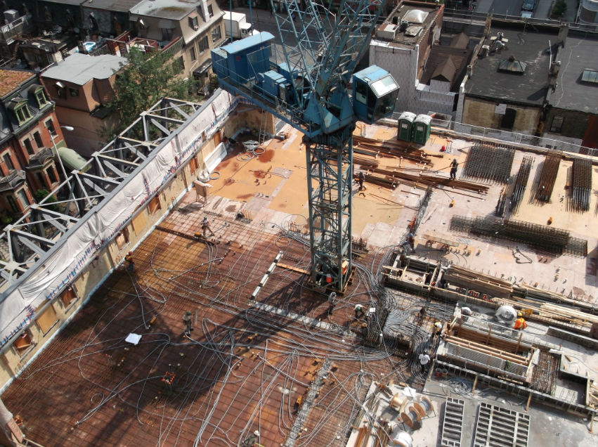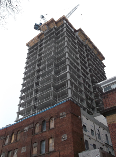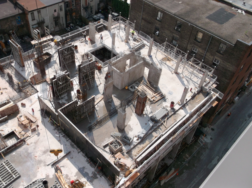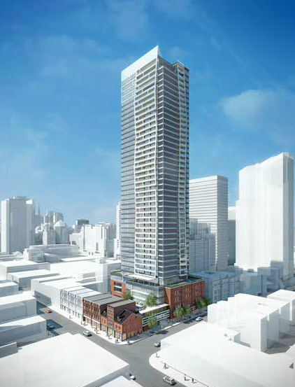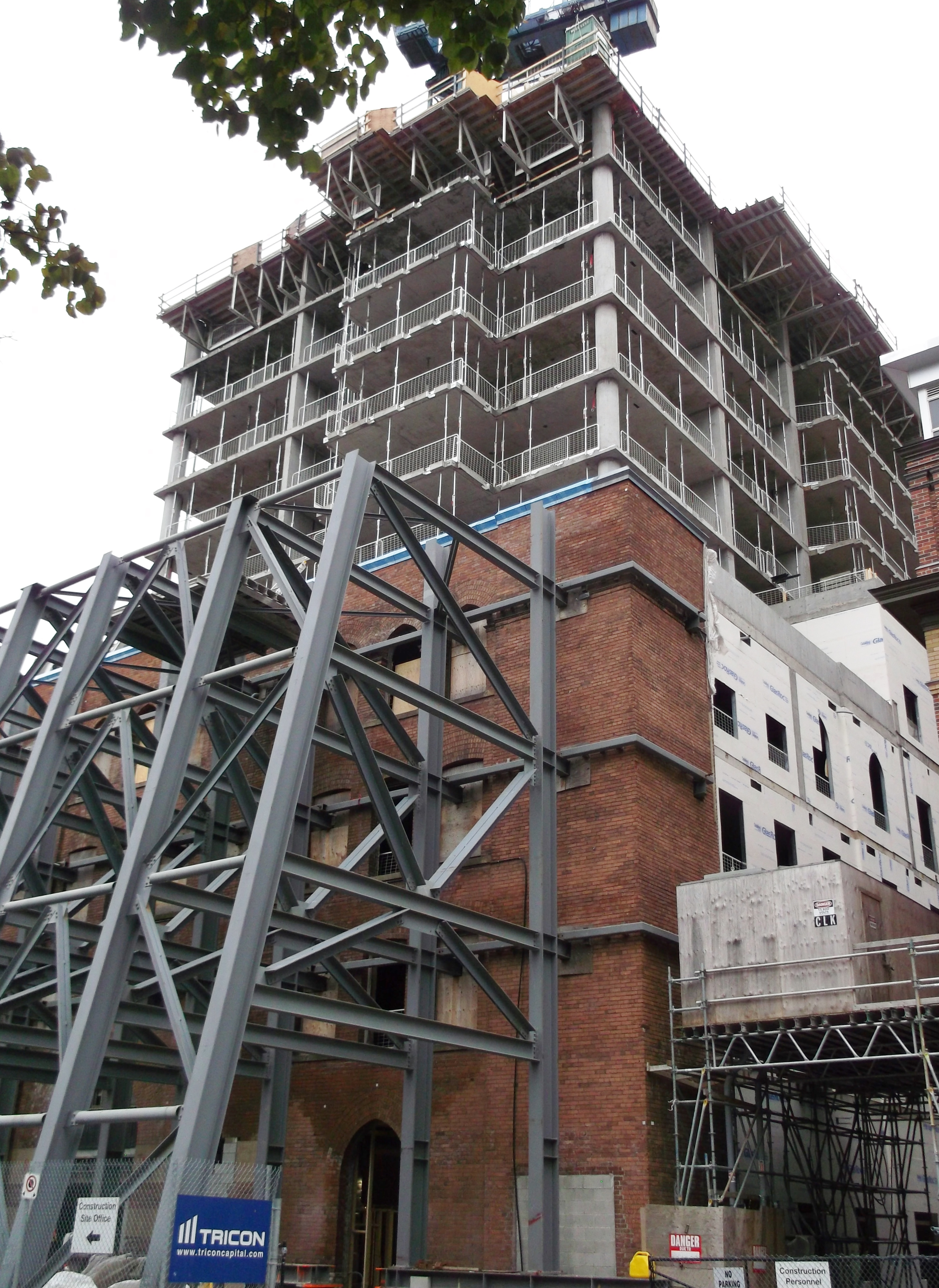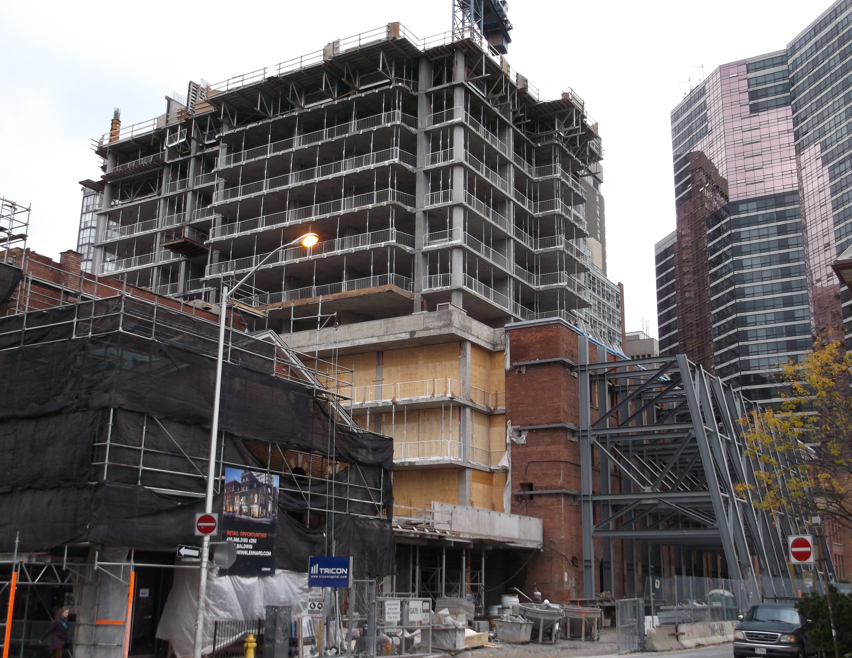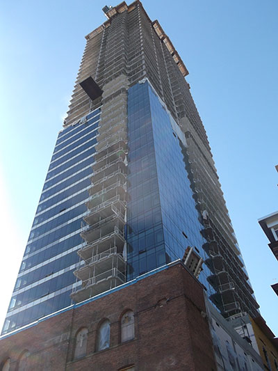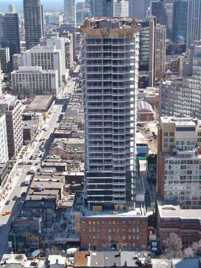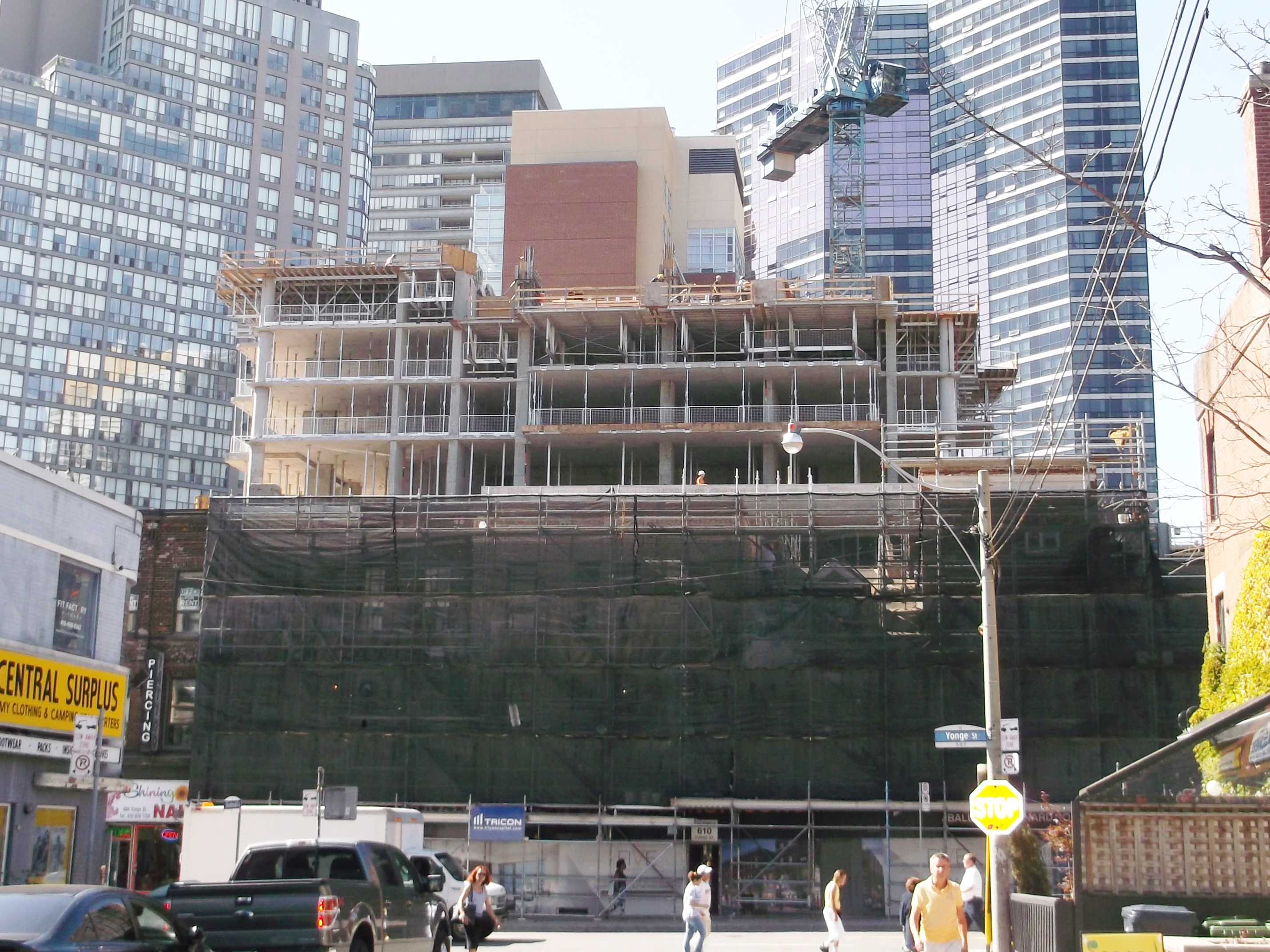 "FIVE Condos at 5 St. Joseph is a 48-storey residential condominium project located in the heart of downtown Toronto. The project consists of 539 residential units and 11,250 sq. ft. of ground floor retail space. The project incorporates modern architecture with existing heritage architecture. The historical preservation involves the retention of the four-storey 1905 Gothic revival façade of 5 St. Joseph which will be one of the largest façade retentions ever undertaken in Toronto. The building also includes a 10,000 sq. ft. amenity center and a 6,000 sq. ft outdoor roof garden. Five is the winder of the BILD Condo of the Year Award, 2011. Pure construction value of $120 Million."
